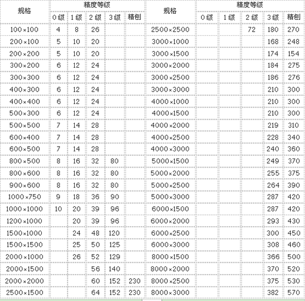 划线平板精度:按**标准计量检定规程执行,分别为0、1、2、3四个等级。
